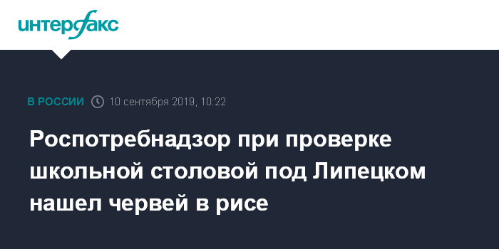 Москва. 10 сентября. INTERFAX.RU - Управление Роспотребнадзора по Липецкой области совместно с прокуратурой провело проверку после поступления сообщений о червях в крупе в столовой средней школы № 2 города Задонска.