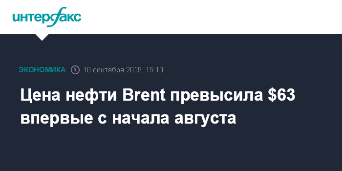 Ноябрьские фьючерсы на нефть марки Brent на лондонской бирже ICE Futures к 14:45 по московскому времени подорожали на $0,6 (0,96%) - до $63,19 за баррель. Цена Brent превысила $63 за баррель впервые с 1 августа.