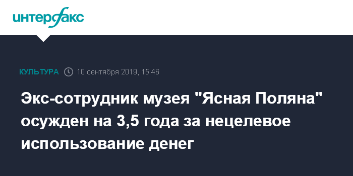 Экс-сотрудник музея "Ясная Поляна" осужден на 3,5 года за нецелевое использование денег