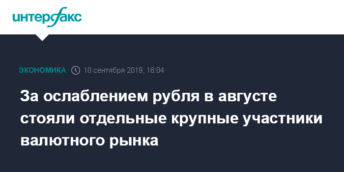 За ослаблением рубля в августе стояли отдельные крупные участники валютного рынка