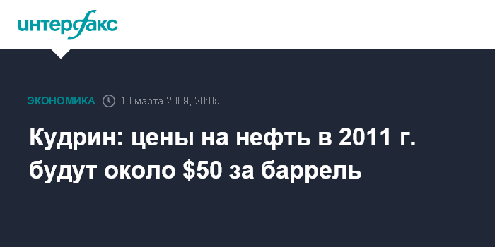 Кудрин: цены на нефть в 2011 г. будут около $50 за баррель