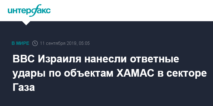 Москва. 11 сентября. INTERFAX.RU - Израильские самолеты нанесли удары по Газе в среду через несколько часов после того, как две ракеты были выпущены из анклава в сторону Израиля.