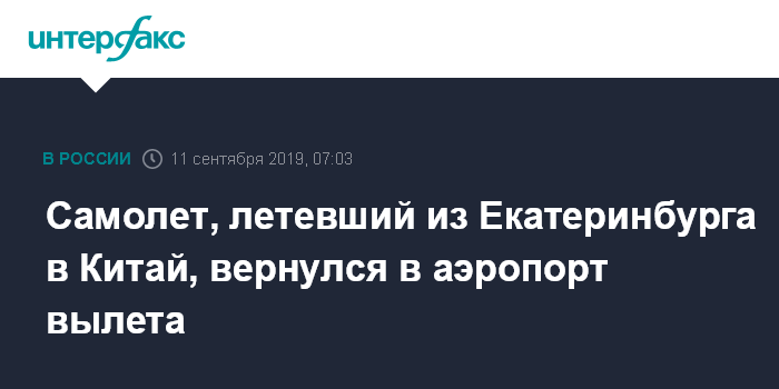 Самолет, летевший из Екатеринбурга в Китай, вернулся в аэропорт вылета