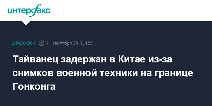 Тайванец задержан в Китае из-за снимков военной техники на границе Гонконга