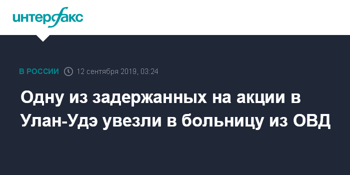 Москва. 12 сентября. INTERFAX.RU - Женщине, задержанной в автобусе на площади Советов в Улан-Удэ, стало плохо в отделении полиции Советского района, сообщил депутат Народного хурала Бурятии Баир Цыренов в онлайн-трансляции в соцсетях.