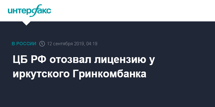 ЦБ РФ отозвал лицензию у иркутского Гринкомбанка