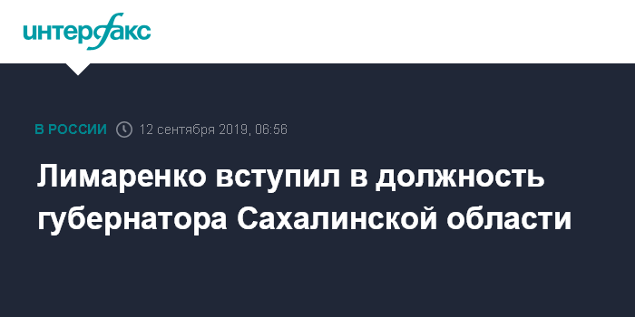 Лимаренко вступил в должность губернатора Сахалинской области