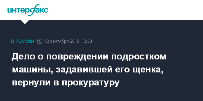 Дело о повреждении подростком машины, задавившей его щенка, вернули в прокуратуру