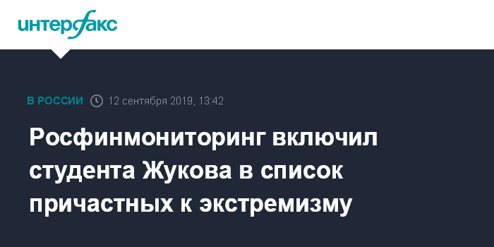 Росфинмониторинг включил студента Жукова в список причастных к экстремизму