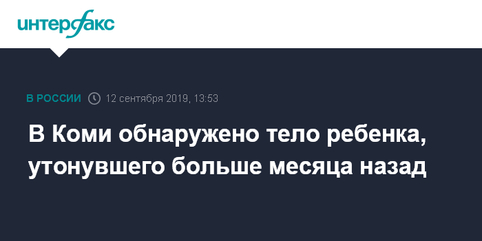 Москва. 12 сентября. INTERFAX.RU - В Коми нашли тело трехлетнего мальчика, утонувшего в Усть-Куломском районе в начале августа.