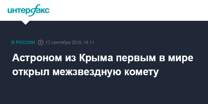 Астроном из Крыма первым в мире открыл межзвездную комету