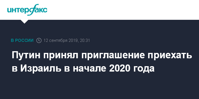 Москва. 12 сентября. INTERFAX.RU - Президент РФ Владимир Путин сообщил, что принял приглашение президента Израиля посетить это государство в начале следующего года.
