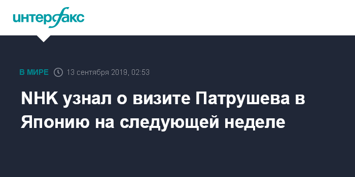 NHK узнал о визите Патрушева в Японию на следующей неделе