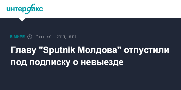 Москва. 17 сентября. INTERFAX.RU - Руководитель "Sputnik Молдова" Владимир Новосадюк, который был задержан во вторник сотрудниками Генпрокуратуры Молдавии, освобожден под подписку о невыезде, следует из сообщения на сайте прокуратуры.