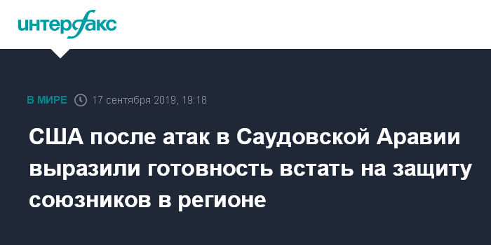 Москва. 17 сентября. INTERFAX.RU - Вице-президент США Майк Пенс, комментируя атаки на нефтяные объекты Саудовской Аравии, заявил во вторник о готовности США обеспечить защиту своих интересов и союзников в регионе.