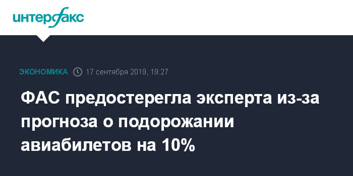ФАС предостерегла эксперта из-за прогноза о подорожании авиабилетов на 10%