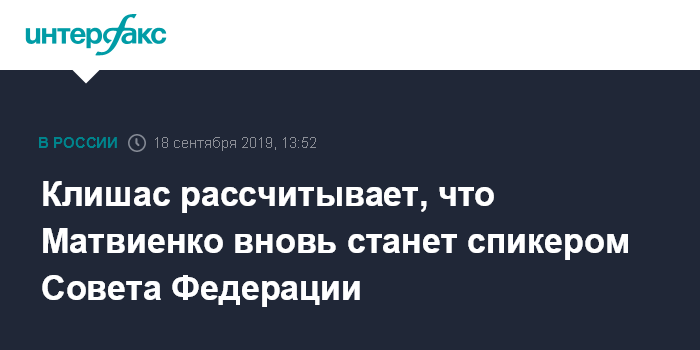 "Я очень надеюсь, что Матвиенко продолжит работу председателем Совфеда. Уверен, что большинство сенаторов поддержит переизбрание Валентины Ивановны. У нас сложилась отличная команда, мы хорошо сработались, при том, что каждый год в Совфед приходят новые представители регионов. Палата работает очень слаженно и в основном это заслуга председателя палаты", - сказал Клишас "Интерфаксу" в среду.