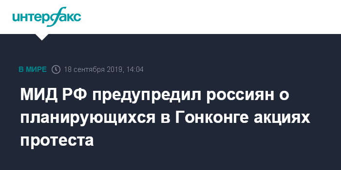 МИД РФ предупредил россиян о планирующихся в Гонконге акциях протеста