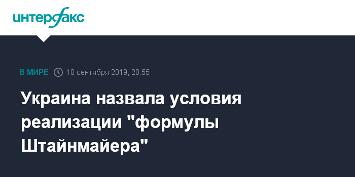 Москва. 18 сентября. INTERFAX.RU - Представитель Украины в Трехсторонней контактной группе по Донбассу Леонид Кучма заявил в среду в Минске, что реализация "формулы Штайнмайера" возможна только при условии выполнения нескольких пунктов. Об этом сообщила пресс-секретарь Кучмы Дарка Олифер.