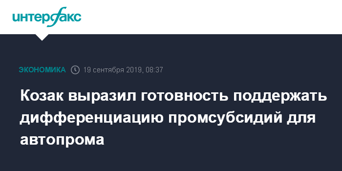Москва. 19 сентября. INTERFAX.RU - Вице-премьер РФ Дмитрий Козак готов поддержать дифференциацию промсубсидий на компенсацию утильсбора для автоконцернов, обсудит консолидированную позицию ведомств по данному вопросу на встрече с представителями отрасли в конце сентября, сообщает газета "Коммерсантъ".