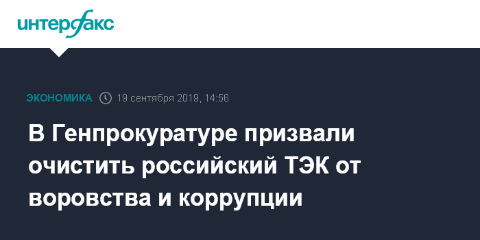 Москва. 19 сентября. INTERFAX.RU - В Генпрокуратуре России заявили о значительной криминализации российского топливно-энергетического комплекса и необходимости очищения комплекса от воровства и коррупции.