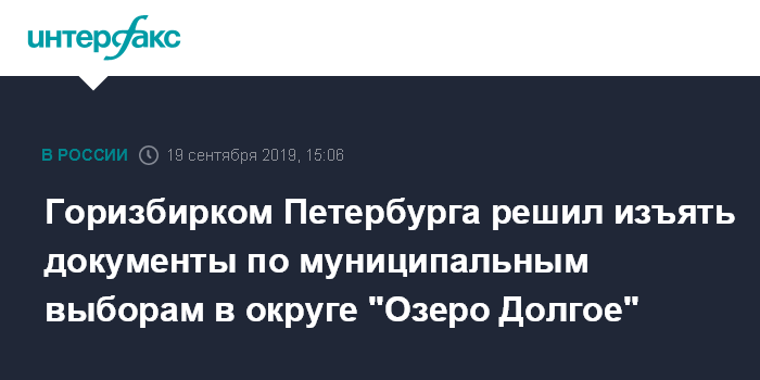 Москва. 19 сентября. INTERFAX.RU - Санкт-Петербургская избирательная комиссия поручила изъять документацию по муниципальным выборам в избиркоме муниципального образования (ИКМО) "Озеро Долгое", в который больше недели не могут попасть оппозиционные кандидаты и представители ЦИК.