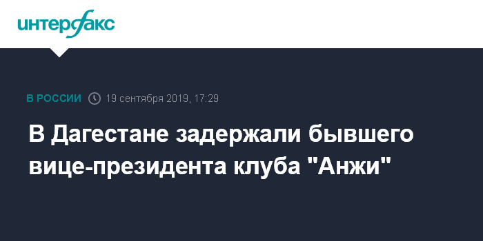 Москва. 19 сентября. INTERFAX.RU - В Дагестане сотрудники уголовного розыска задержали бывшего вице-президента футбольного клуба "Анжи" Махи Идрисова, сообщили в пресс-службе регионального МВД.