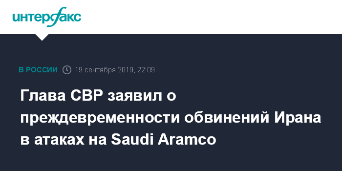 Глава СВР заявил о преждевременности обвинений Ирана в атаках на Saudi Aramco