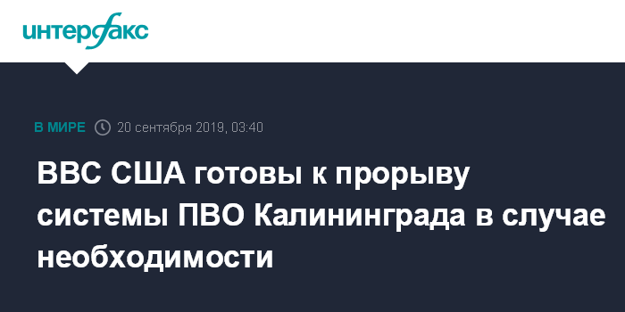 ВВС США готовы к прорыву системы ПВО Калининграда в случае необходимости
