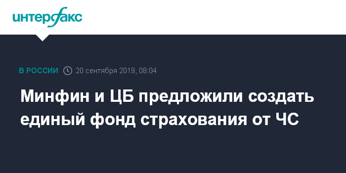 Минфин и ЦБ предложили создать единый фонд страхования от ЧС