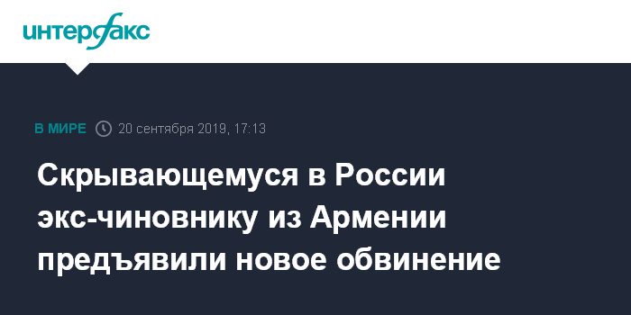 Скрывающемуся в России экс-чиновнику из Армении предъявили новое обвинение