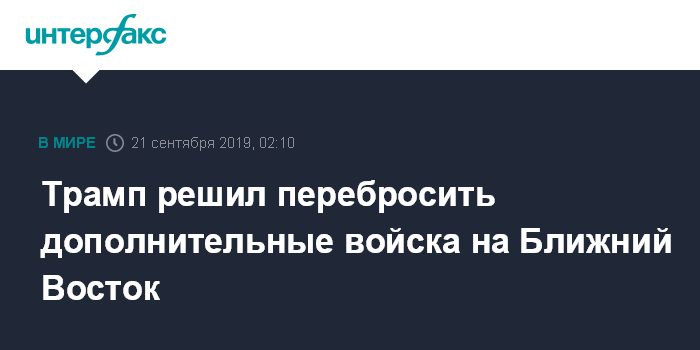 Москва. 21 сентября. INTERFAX.RU - Президент США Дональд Трамп одобрил отправку на Ближний Восток дополнительных войск, сообщил в субботу глава Пентагона Марк Эспер.