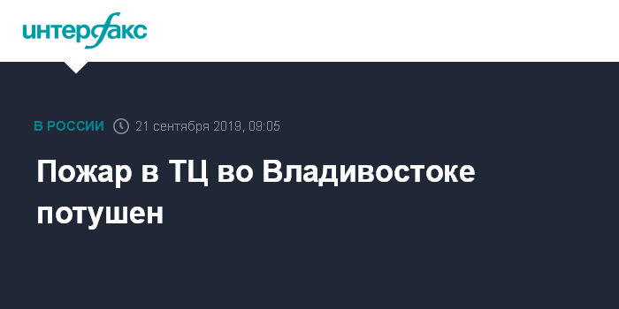 Ранее сообщалось, в 06:06 по местному времени в субботу (23:06 мск пятницы) на пульт пожарной охраны Владивостока поступило сообщение о пожаре в торговом центре по адресу: Проспект 100-летия Владивостока, 57. По предварительным данным, пострадавших нет. В 09:40 по местному времени (02:40 мск) пожар был локализован.