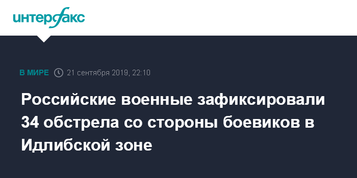 "20 сентября зафиксировано 34 обстрела. Боевики незаконных вооруженных формирований совершили обстрелы населенных пунктов Сабикия, Биньямин, Алеппо, Маканис-Эд-Дувайри провинции Алеппо; Айн-эль-Кантара, Сандран, Нахшебба, Ардаш-Даг, Кальат-Марза, Бейт-Смайра провинции Латакия; Хан-Шейхун, Эс-Салихия, Умм-Джлаль, Тамана, Хабит, Шарджа, Эль-Мшайрфа провинции Идлиб; Хуайз, Телль-Эт-Тут, Кара-Джурн провинции Хама", - сказал Бакин.