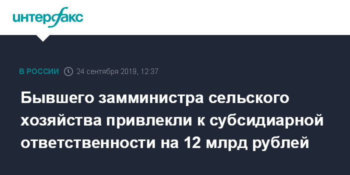 Бывшего замминистра сельского хозяйства привлекли к субсидиарной ответственности на 12 млрд рублей