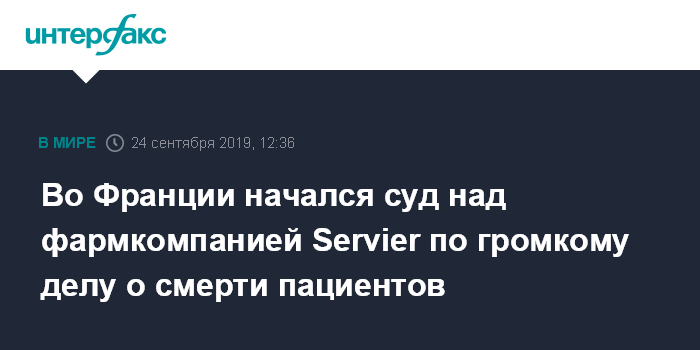 Москва. 24 сентября. INTERFAX.RU - Во Франции начался громкий судебный процесс над фармацевтическим гигантом Servier, которого обвиняют в непредумышленном убийстве из-за препарата для больных диабетом с избыточным весом.