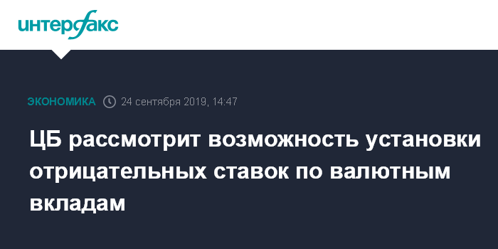 ЦБ рассмотрит возможность установки отрицательных ставок по валютным вкладам