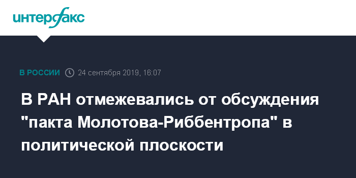 В РАН отмежевались от обсуждения "пакта Молотова-Риббентропа" в политической плоскости