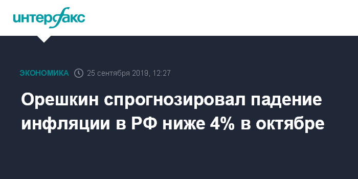 Орешкин спрогнозировал падение инфляции в РФ ниже 4% в октябре
