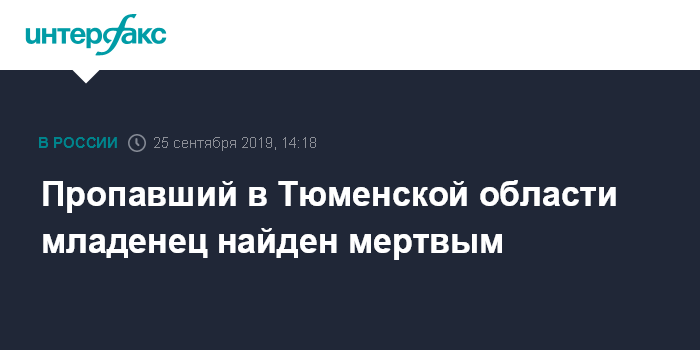 Москва. 25 сентября. INTERFAX.RU - Поиски младенца, похищенного в Заводоуковске Тюменской области, завершены, обнаружено его тело. Об этом сообщили в среду агентству "Интерфакс" в пресс-службе областного УМВД.