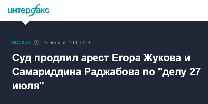 Суд продлил арест Егора Жукова и Самариддина Раджабова по "делу 27 июля"