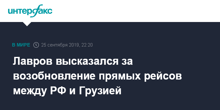 Москва. 25 сентября. INTERFAX.RU - Министр иностранных дел РФ Сергей Лавров считает, что прямое сообщение между Россией и Грузией следует возобновить, об этом он заявил в интервью газете "Коммерсантъ", опубликованном в среду.