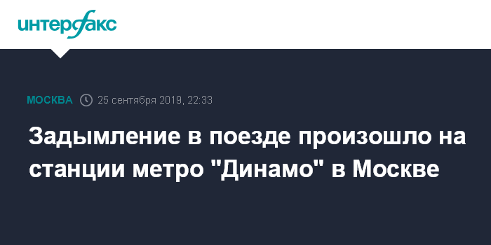 Задымление в поезде произошло на станции метро "Динамо" в Москве