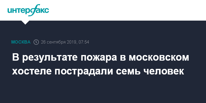 Москва. 26 сентября. INTERFAX.RU - При пожаре в хостеле в Измайловском кремле в Москве пострадали семь человек, сообщил "Интерфаксу" информированный источник.