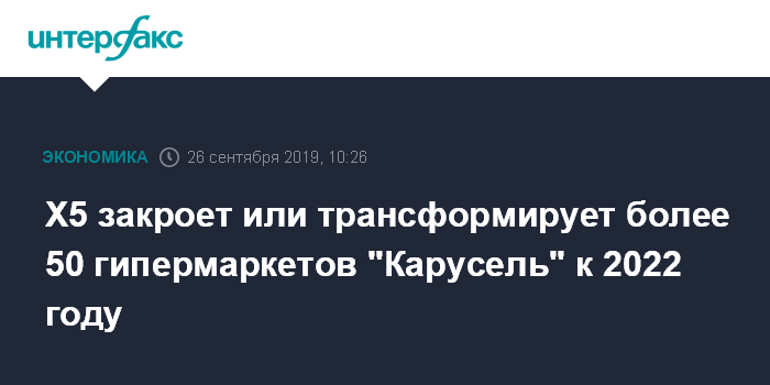 X5 закроет или трансформирует более 50 гипермаркетов "Карусель" к 2022 году