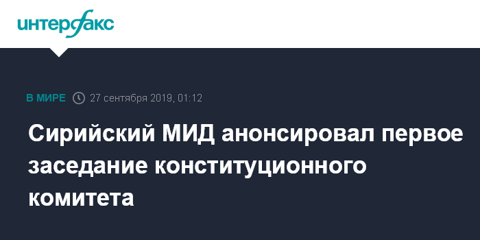 Москва. 27 сентября. INTERFAX.RU - Первое заседание Конституционного комитета Сирии запланировано на 30 октября, заявил глава МИД страны Валид Муаллем.