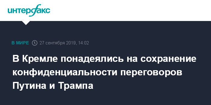 В Кремле понадеялись на сохранение конфиденциальности переговоров Путина и Трампа