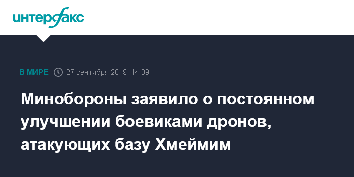 Москва. 27 сентября. INTERFAX.RU - Боевики постоянно работают над улучшением дронов, атакующих российскую авиабазу Хмеймим в Сирии, сообщил журналистам официальный представитель Минобороны РФ генерал-майор Игорь Конашенков.