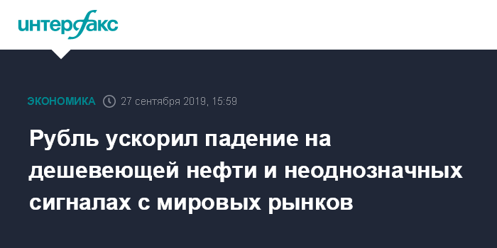 Рубль ускорил падение на дешевеющей нефти и неоднозначных сигналах с мировых рынков