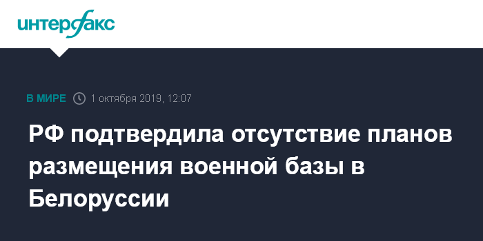 РФ подтвердила отсутствие планов размещения военной базы в Белоруссии